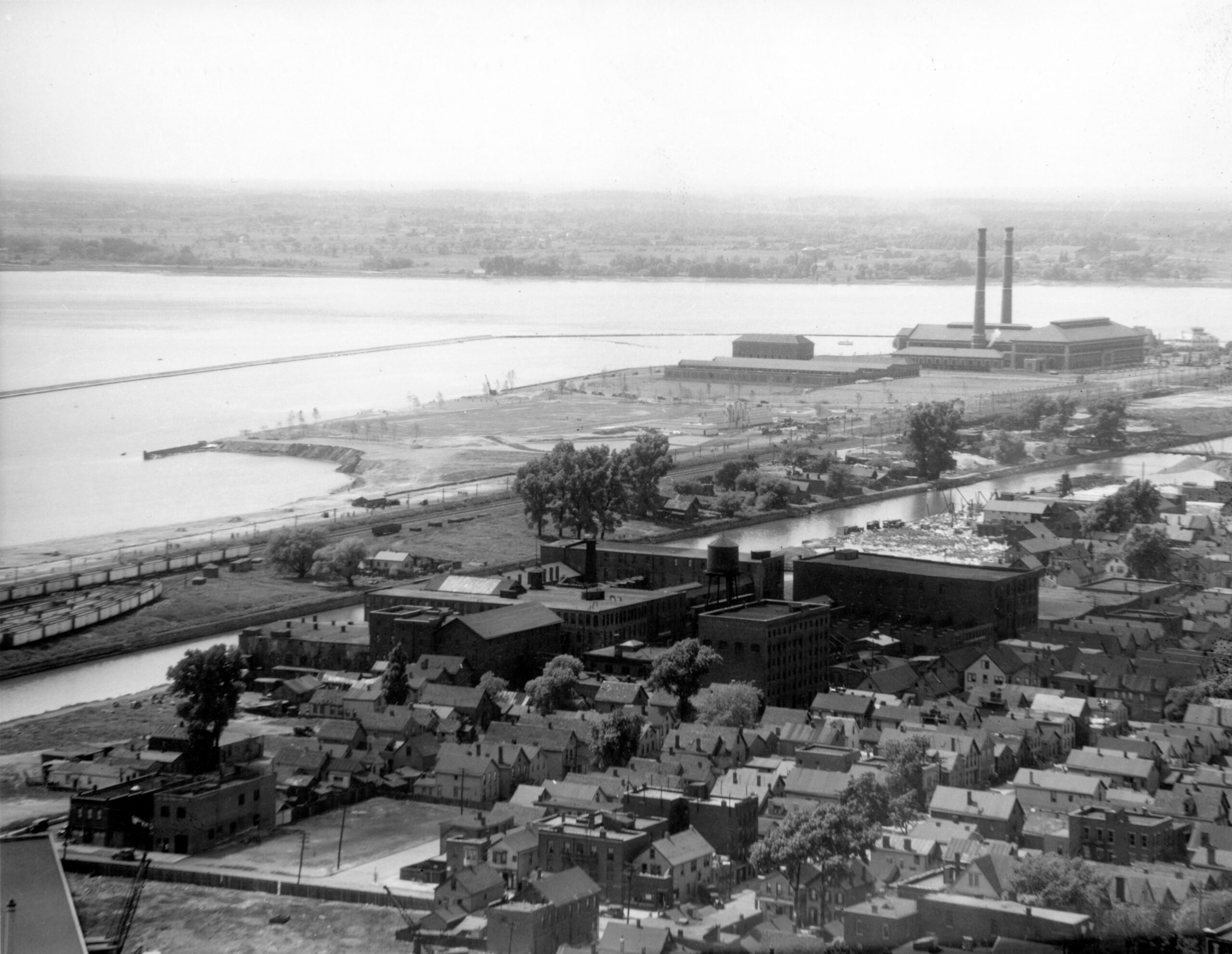 Photo: Aerial view of Buffalo in July 1932 showing both the former section of the Erie Canal and the park. Citation: Collection of The Buffalo History Museum. General photograph collection, Buffalo Views.